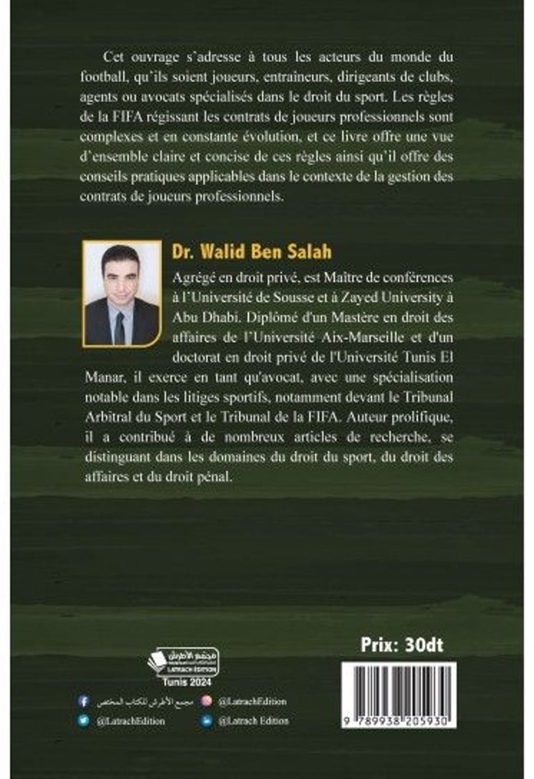 Cet ouvrage est essentiel pour tous les acteurs du monde du football, qu’ils soient joueurs, entraîneurs, dirigeants de clubs, agents ou avocats spécialisés dans le droit du sport. Les règles de la FIFA régissant les contrats de joueurs professionnels sont complexes et en constante évolution, et ce livre offre une vue d’ensemble claire et concise de ces règles ainsi qu’il offre des conseils pratiques applicables dans le contexte de la gestion des contrats de joueurs professionnels.
